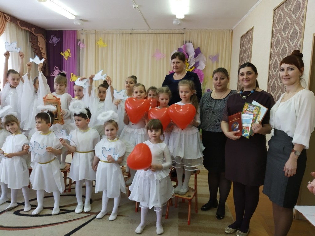 9 апреля, в рамках празднования дня Православной книги в МБДОУ Центр развития ребенка — детский сад №164 прошел праздник «В мире столько разных книжек». В мероприятии принял участие руководитель молодежного отдела храма Павел Викторович Козлов и преподаватели Воскресной школы Крюкова Олеся Владимировна и Пелих Елена Семеновна. Детскому саду были подарены книги и часы с изображением храма.