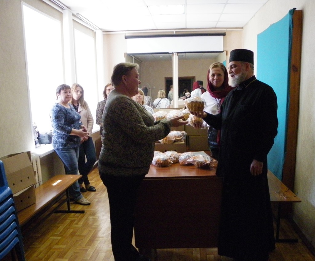 29 апреля Настоятель храма протоиерей Василий Володько вместе с социальным работником прихода матушкой Натальей Струковой посетили своих подопечных в филиале Центра соцзащиты центрального района «Воскресенский» . Отец Василий поздравил всех присутствующих с праздником Пасхи Христовой и передал 100 куличей от прихода для посетителей Центра.