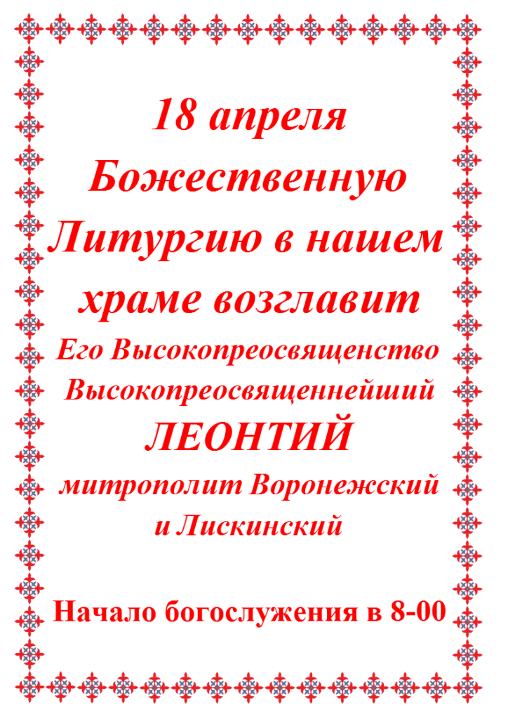Расписание богослужений