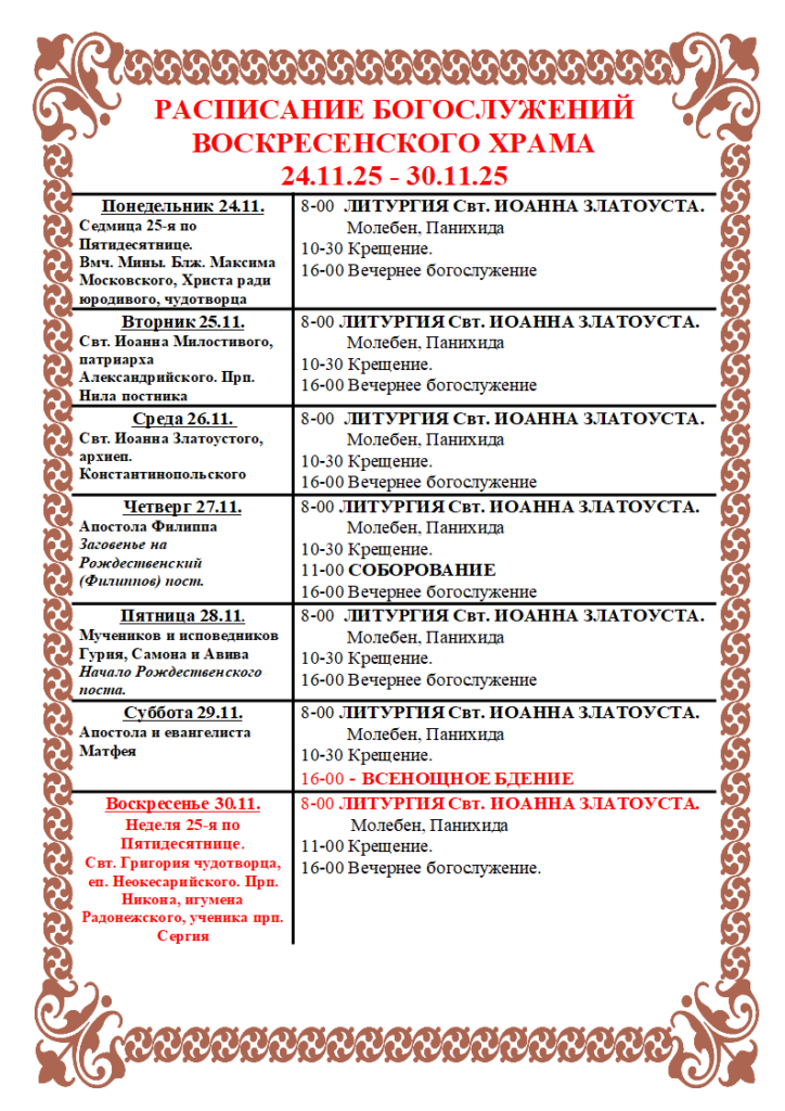 Расписание богослужений